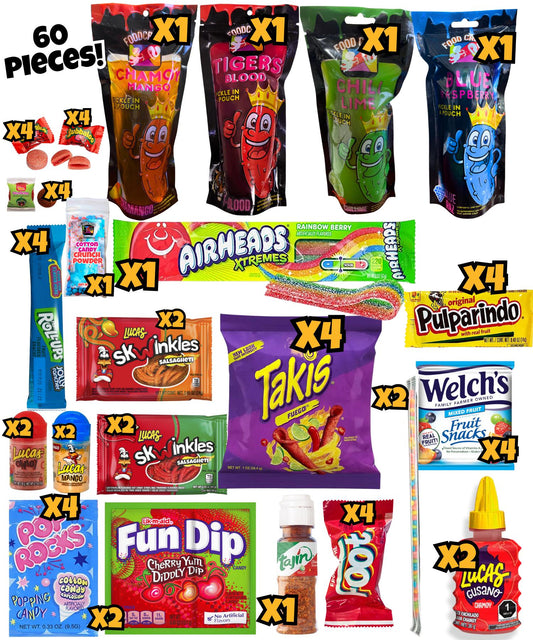 Spicy Hot Chili Lime Pickle Kit + Cotton Candy Crunch-Tiktok Challenge Candy Gift Pouch (13 Pcs)-Birthday Gifts For Teens w Fruit Roll ups, skwinkles Mexican candy snacks Variety Pack by Food Crush